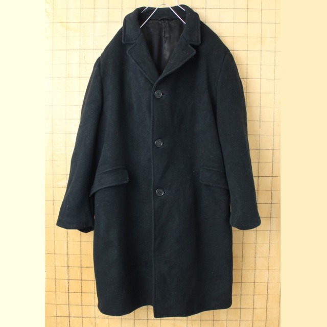 60s 70s EURO West of England ウールコート ブラック メンズL相当 Ray Side BRAND ヨーロッパ古着 092425aw63