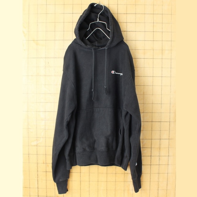 00s USA champion チャンピオン ワンポイント リバースウィーブスウェットパーカー フーディー ブラック メンズM アメリカ古着