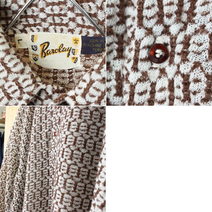 70s 80s USA Barclay 総柄 ニット 長袖ポロシャツ メンズL ブラウン アメリカ古着 031225ss21