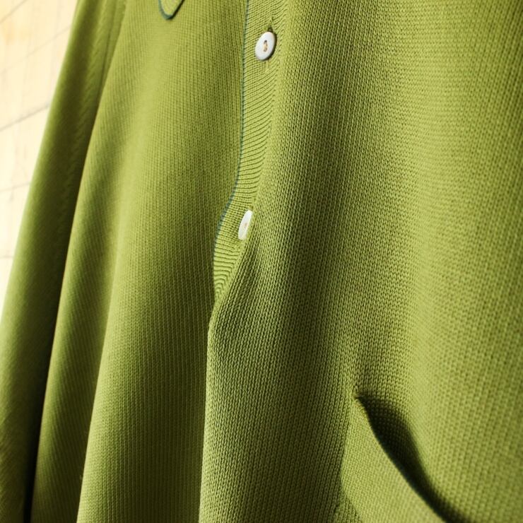年代を象徴する大きな襟がポイント、カラーはグリーンです。