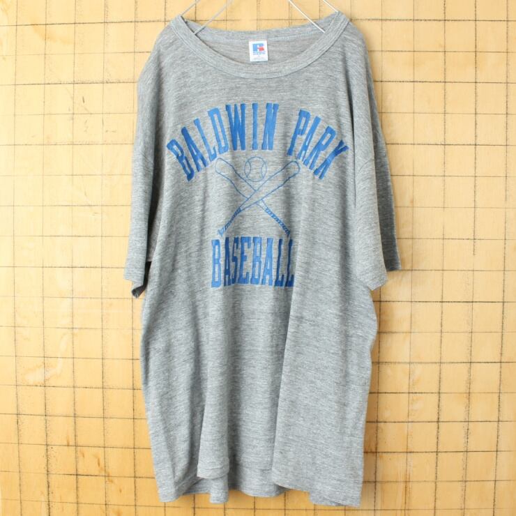 80s 90s USA製 RUSSELL ATHLETIC プリント 半袖 Tシャツ グレー メンズXL アメリカ古着 010825aw130