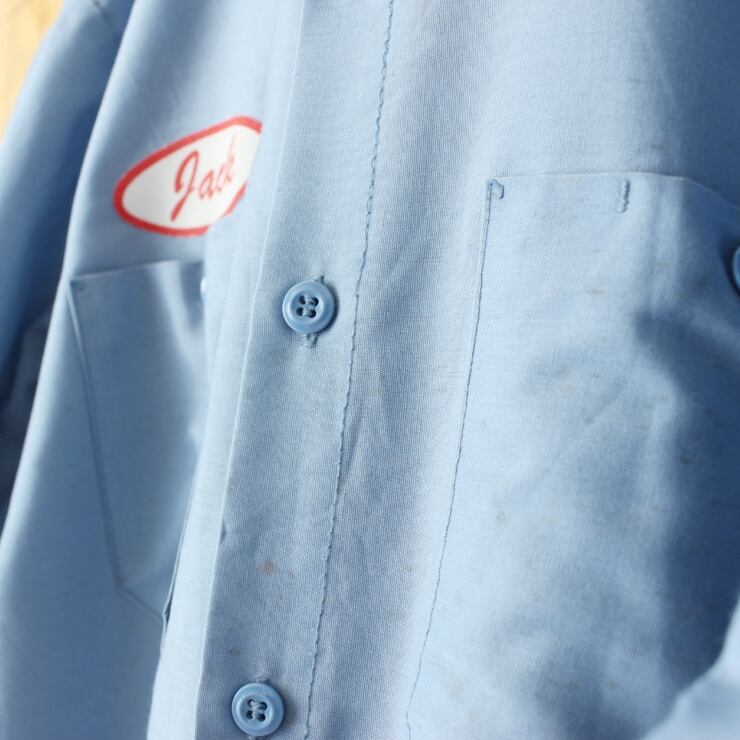 70s 80s USA製 RED KAP レッドキャップ ワッペン ワークシャツ ライトブルー メンズM 半袖 アメリカ古着です。