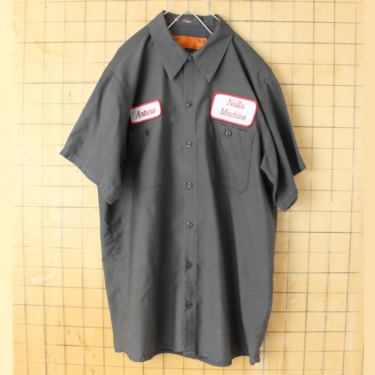 70s 80s USA製 GCA ワッペン ワークシャツ グレー メンズL 半袖 アメリカ古着 050725ss120