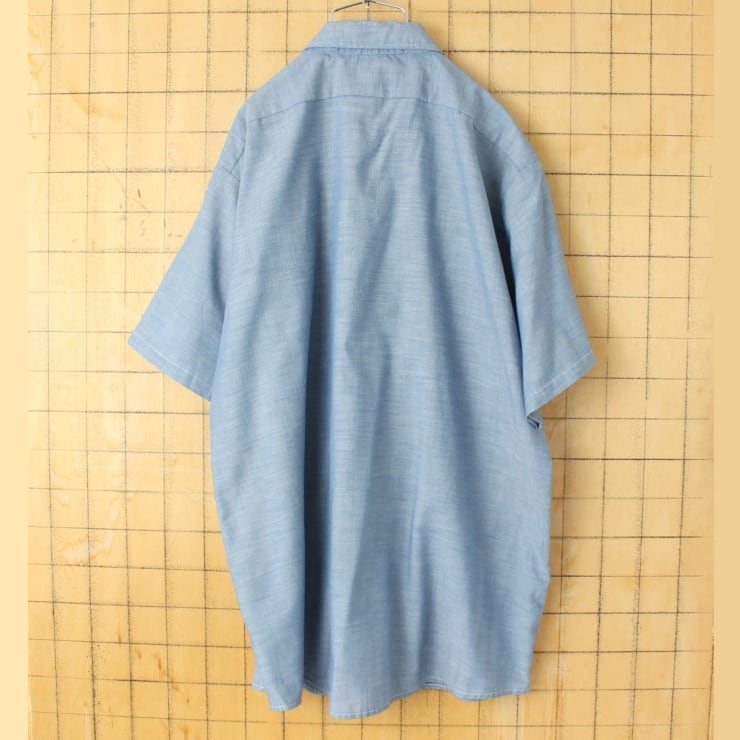 70s 80s USA製 RED KAP レッドキャップ ワッペン シャンブレーワークシャツ ライトブルー メンズL 半袖 アメリカ古着 050725ss125