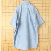 70s 80s USA製 ワッペン ストライプワークシャツ ライトブルー メンズL相当 半袖 アメリカ古着 050725ss144です。