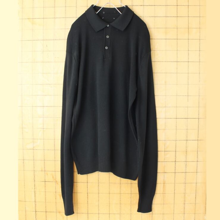 60s 70s USA Ban-Lon バンロン 長袖 ポロシャツ メンズML相当 ブラック ナイロン アメリカ古着 050725ss148