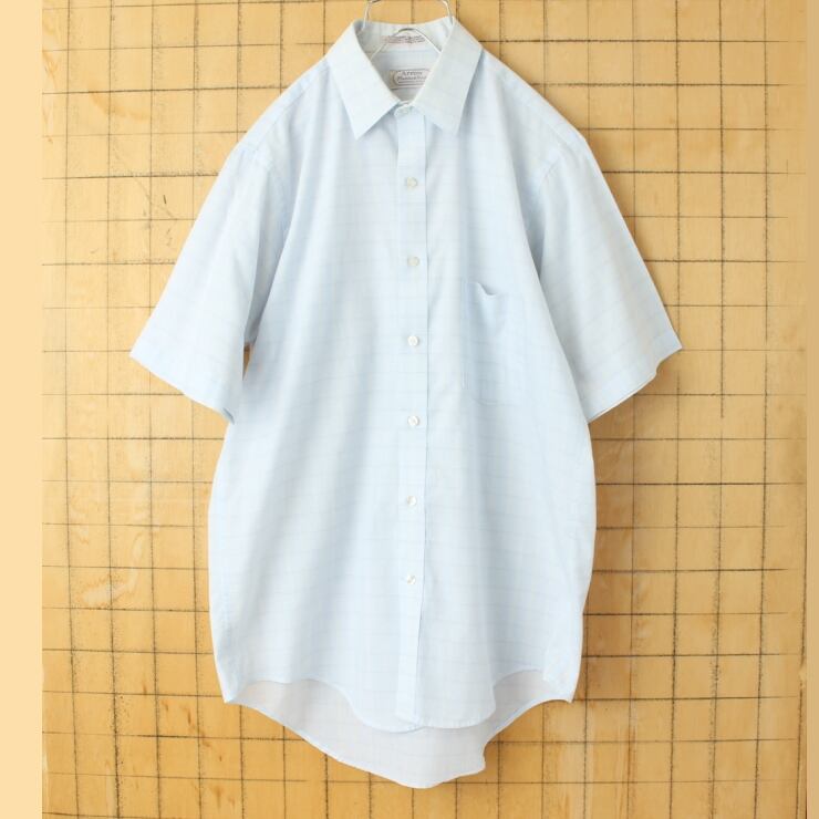 70s 80s USA製 Arrow 半袖 チェックシャツ ライトブルー メンズML相当 アメリカ古着 061125ss18