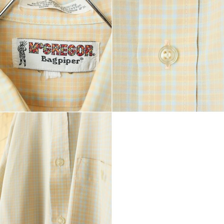 70s 80s USA McGREGOR Bagpiper 半袖 チェックシャツ ベージュ イエロー メンズL アメリカ古着です。