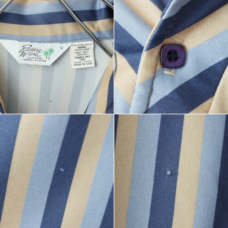 70s 80s USA製 Resort Ware オープンカラーストライプポロシャツ メンズL ブルー 半袖 アメリカ古着 050725ss208
