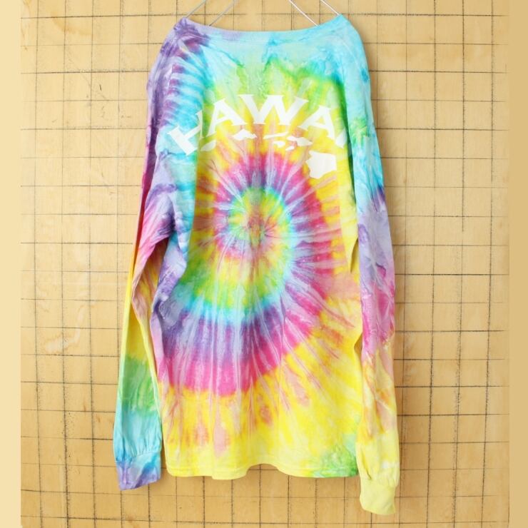 USA colortone HAWAII 両面プリント タイダイ長袖Tシャツ ロンT メンズL カラフル アメリカ古着 071625ss29