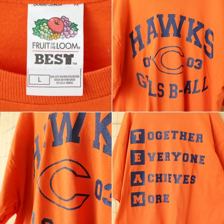 90s 00s USA FRUIT OF THE LOOM BEST HAWKS 半袖プリントTシャツ オレンジ メンズL アメリカ古着 071625ss33