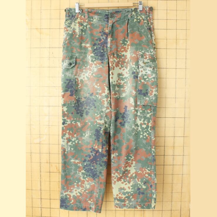 ドイツ軍 ミリタリー フレクターカモ カーゴパンツ W35相当 タック 迷彩 カモフラージュ 実品 ヨーロッパ古着 071625ss3