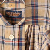 70s 80s USA MOVING-UP チェックボタンダウンシャツ ベージュ メンズL 長袖 アメリカ古着です。