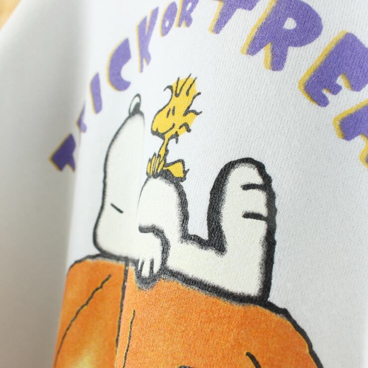 80s 90s USA BLITZZ PEANUTS TRICK OR TREAT スヌーピープリントスウェット ホワイト メンズXL アメリカ古着 071625ss95