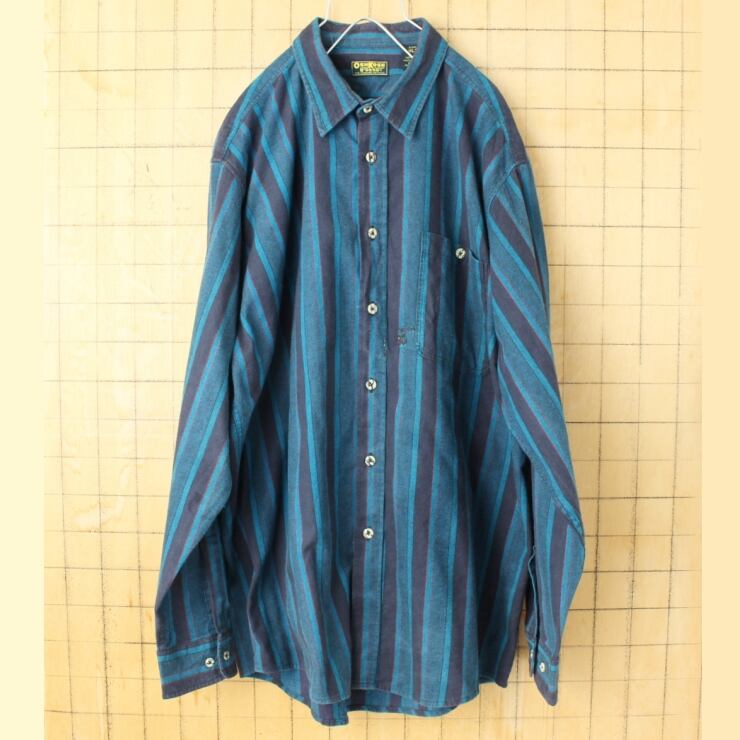 ビッグサイズ 90s 00s ハンガリー製 OSH KOSH オシュコシュ ストライプシャツ ブルー メンズXL 長袖 ヨーロッパ古着 082725aw112