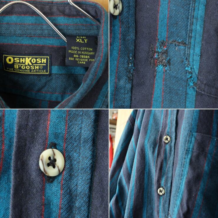 ビッグサイズ 90s 00s ハンガリー製 OSH KOSH オシュコシュ ストライプシャツ ブルー メンズXL 長袖 ヨーロッパ古着です。