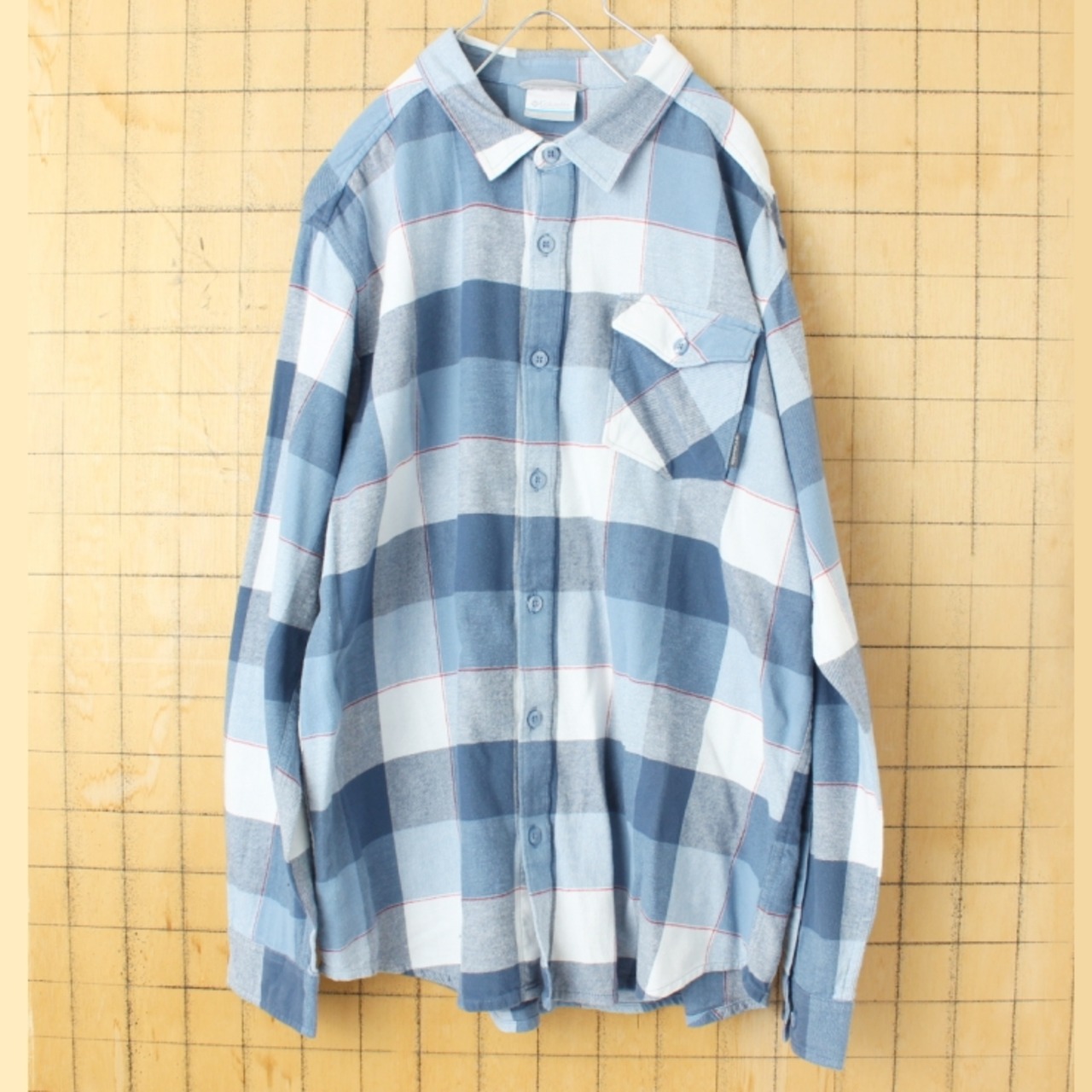 USA Columbia コロンビア フランネルチェックシャツ ブルー メンズL 長袖 アウトドア アメリカ古着です。