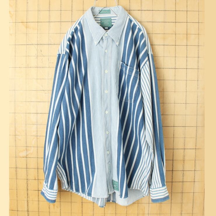 USA BAXTER ストライプボタンダウンシャツ ブルー メンズL 長袖 アメリカ古着 082725aw118