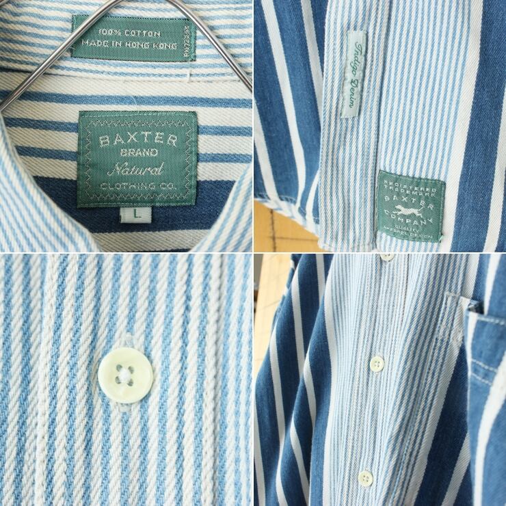 USA BAXTER ストライプボタンダウンシャツ ブルー メンズL 長袖 アメリカ古着です。