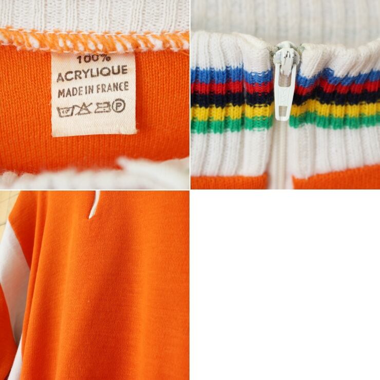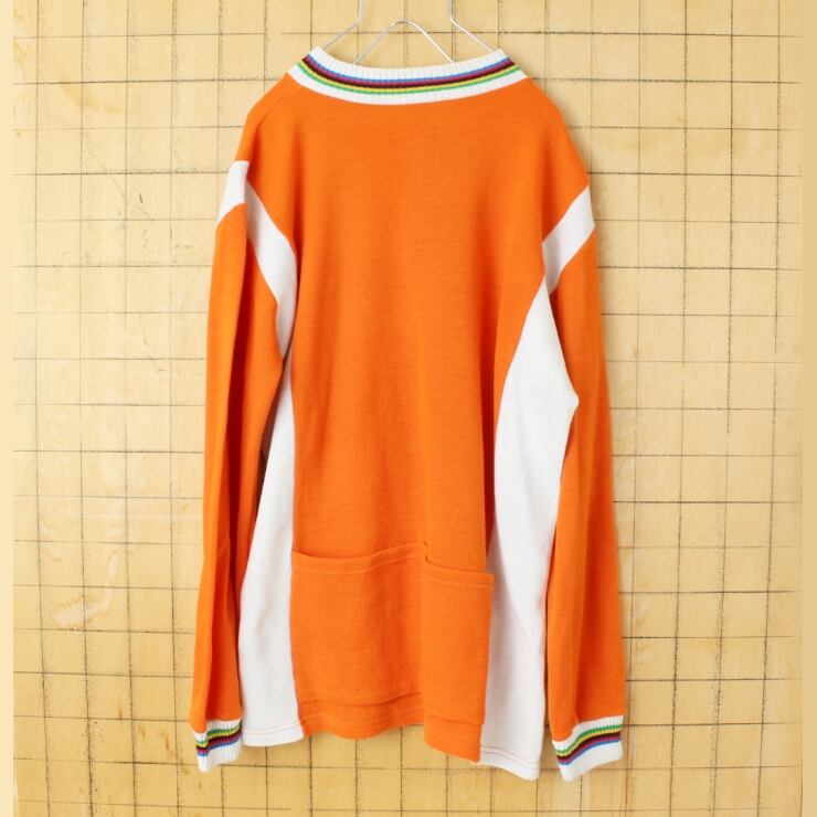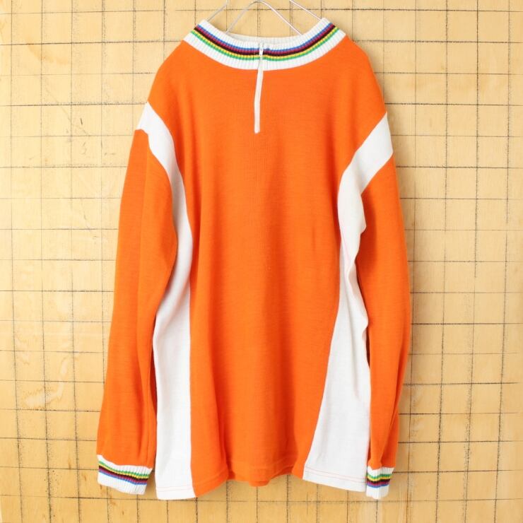 70s 80s FRANCE 長袖サイクリングジャージ シャツ プルオーバー オレンジ メンズL相当 ニット ヨーロッパ古着 082725aw100