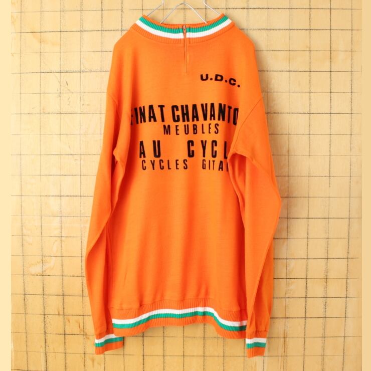 70s 80s FRANCE Crylor 長袖サイクリングジャージ シャツ プルオーバー オレンジ メンズM相当 ニット ヨーロッパ古着 082725aw102