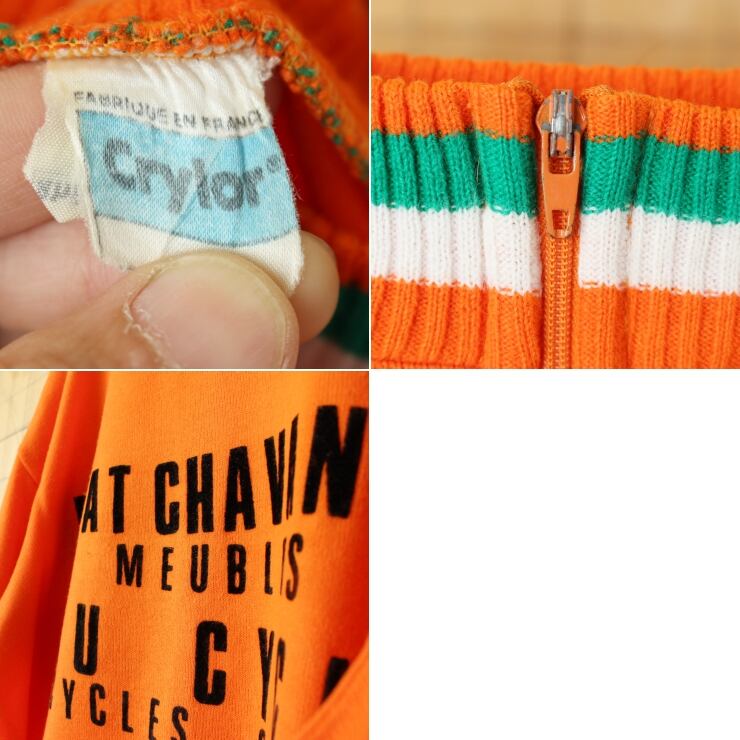 70s 80s FRANCE Crylor 長袖サイクリングジャージ シャツ プルオーバー オレンジ メンズM相当 ニット ヨーロッパ古着です。