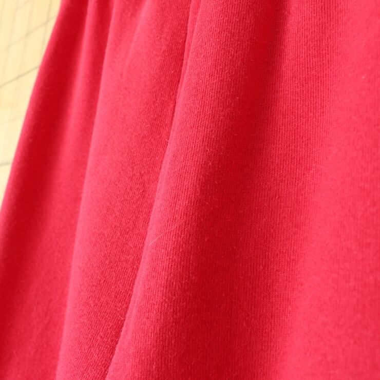 ボディカラーはレッド、程よい厚みのある柔らかい生地感です。
