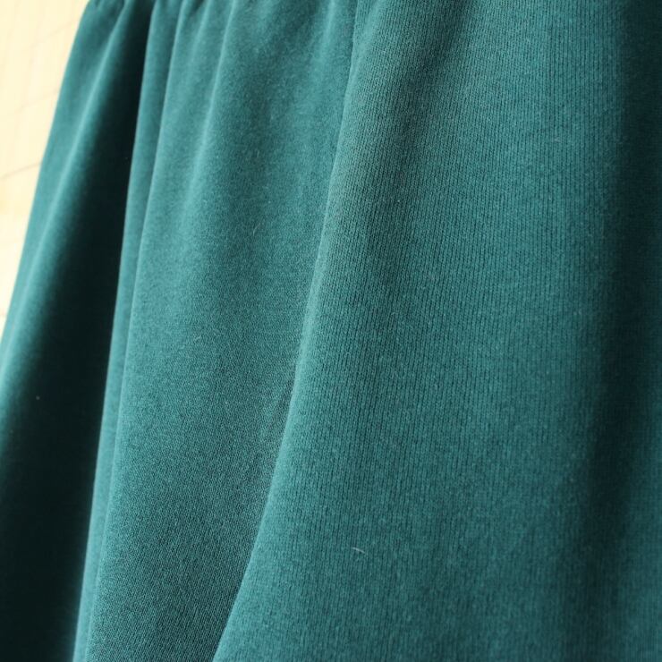 ボディカラーはグリーン、程よい厚みのある柔らかい生地感です。