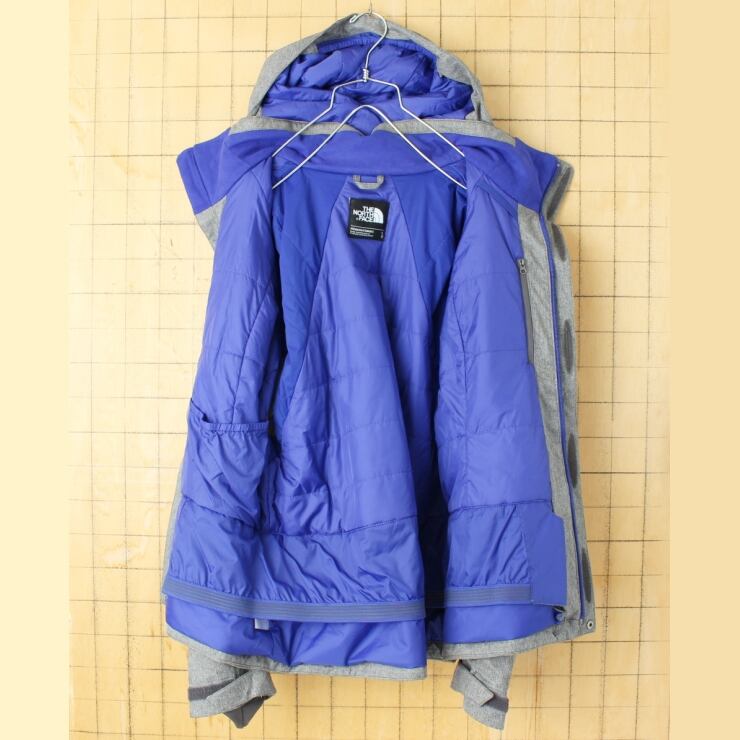 THE NORTH FACE ノースフェイス HYVENT ジップアップ スノージャケット グレー レディースL マウンテンパーカー 中綿入 アメリカ古着です。