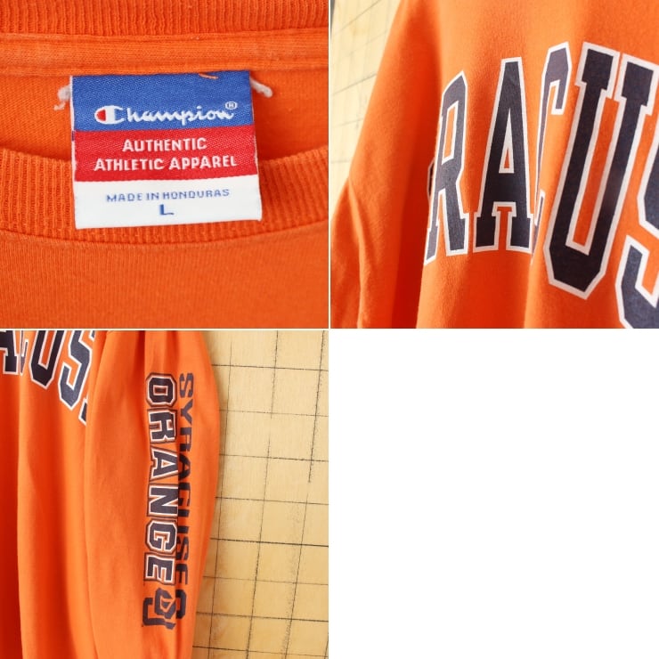 90s 00s USA champion チャンピオン SYRACUSE プリント長袖Tシャツ オレンジ メンズL ロンT アメリカ古着 092425aw66