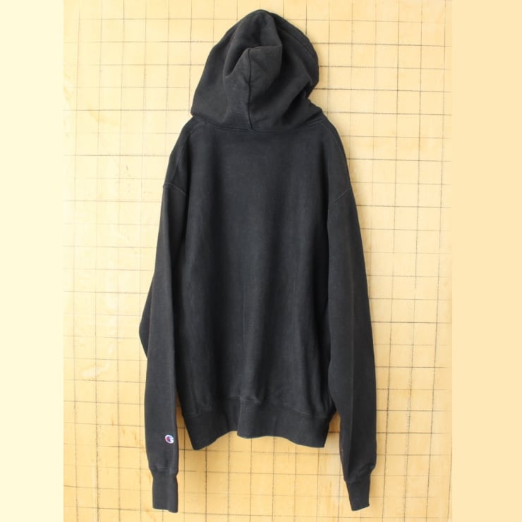00s USA champion チャンピオン ワンポイント リバースウィーブスウェットパーカー フーディー ブラック メンズM アメリカ古着