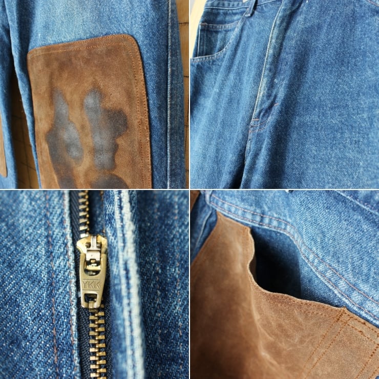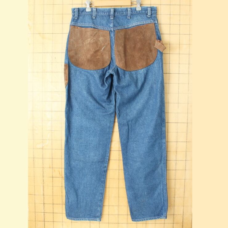 80s 90s USA Jaque Dubois レザーパッチ デニムペインターパンツ ブルージーンズ W34 アメリカ古着 082725aw206
