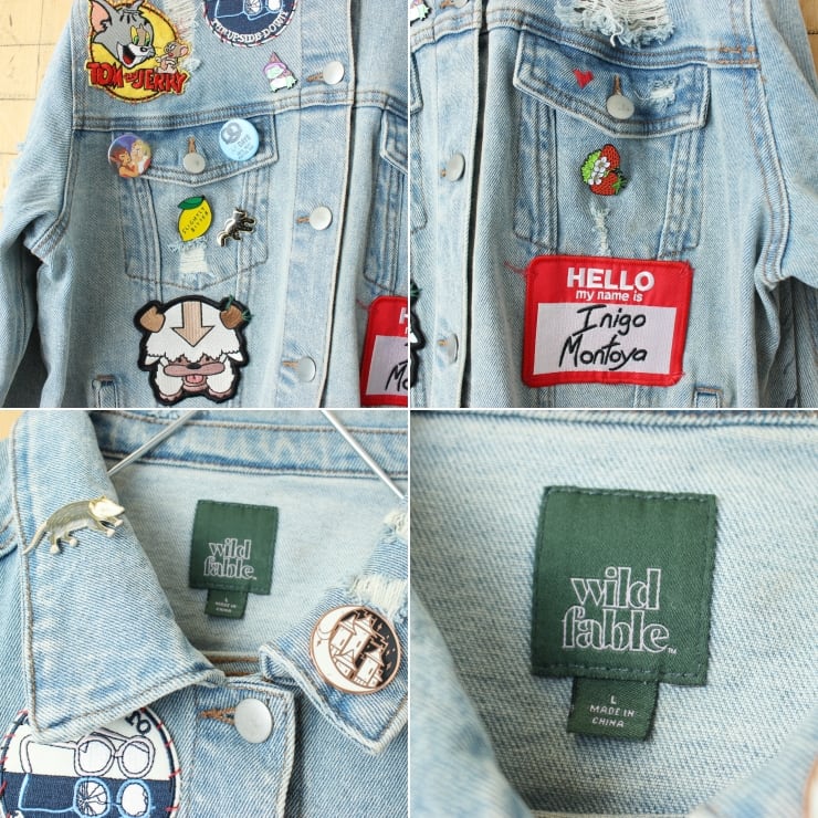 USA Wild Fable ダメージデニムジャケット レディースL ブルー ワッペン バッジ アメリカ古着です。