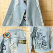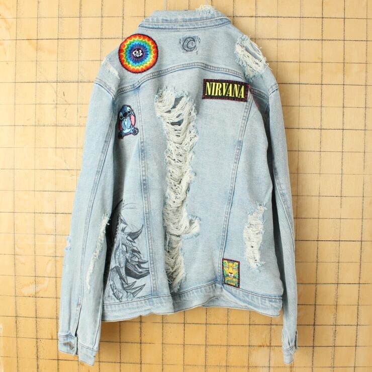 ダメージのあるボディにワッペンやバッジでカスタムされています。