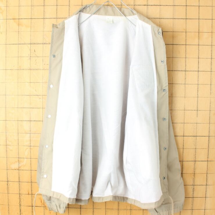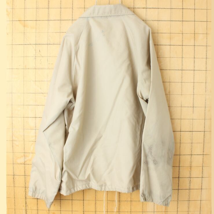 70s 80s USA製 ワッペン ナイロンコーチジャケット メンズM ベージュ ライナー付き アメリカ古着 082725aw137