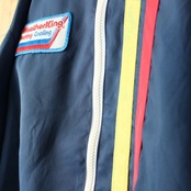 70s 80s USA製 Cap'n Jac ワッペン ナイロンレーシングジャケット メンズL ネイビー ブルー アメリカ古着です。