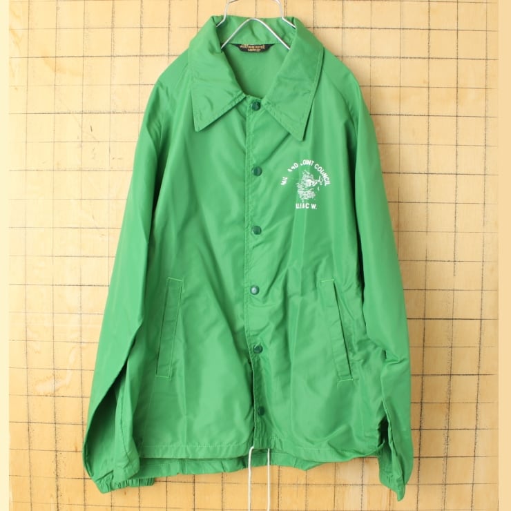 70s 80s USA製 WEATHERCASTER プリント ナイロンコーチジャケット メンズXL相当 グリーン アメリカ古着 082725aw140