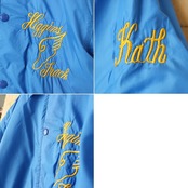 カラーはブルー、胸にウイングフット、袖にKathの刺繍。