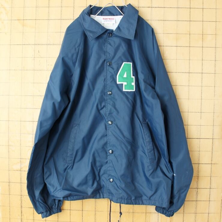 80s 90s USA製 HARTWELL Sports ワッペン ナイロンコーチジャケット メンズM ネイビー ブルー アメリカ古着 082725aw146