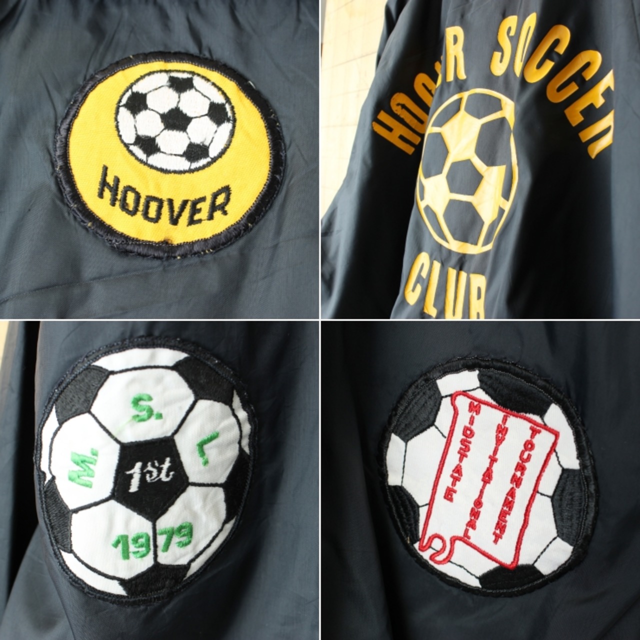 カラーはブラック、フロントに刺繍、バックプリントさらにサッカー関連のワッペンが両面に取り付けられています。