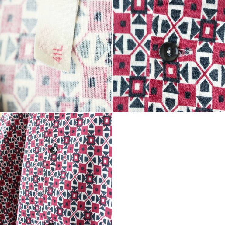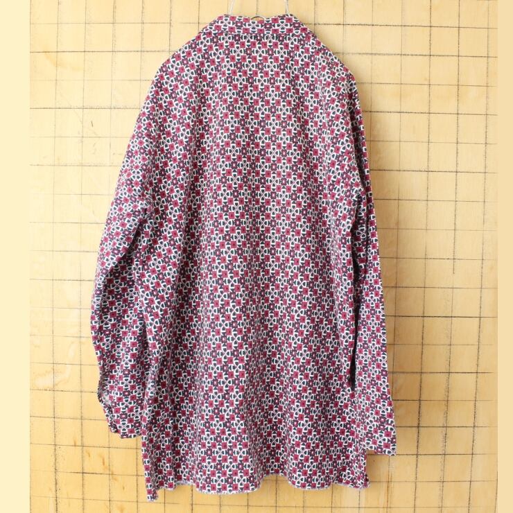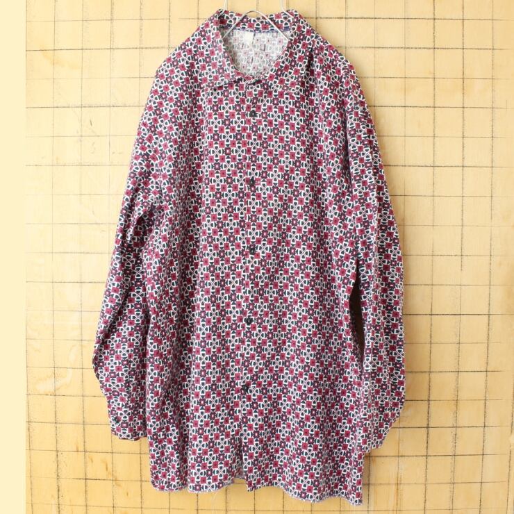 70s 80s EURO コットン総柄シャツ レッド メンズL相当 長袖 ヨーロッパ古着 092425aw47