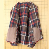 ボディは程よい厚みのあるウール生地、ブラウンとレッド、ブルーのチェック柄です。