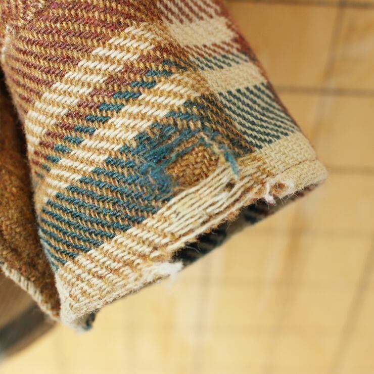 ボディは程よい厚みのあるウール生地、ベージュとブラウン、グリーンのチェック柄です。