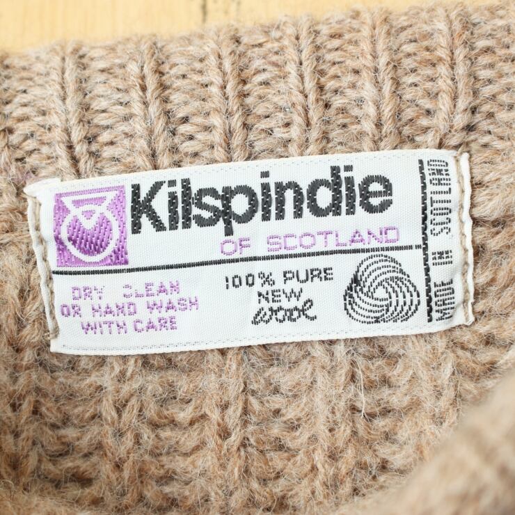 80s 90s スコットランド製 Kilspindie OF SCOTLAND ウールニットクルーネックセーター ベージュ メンズXL相当 ヨーロッパ古着です。