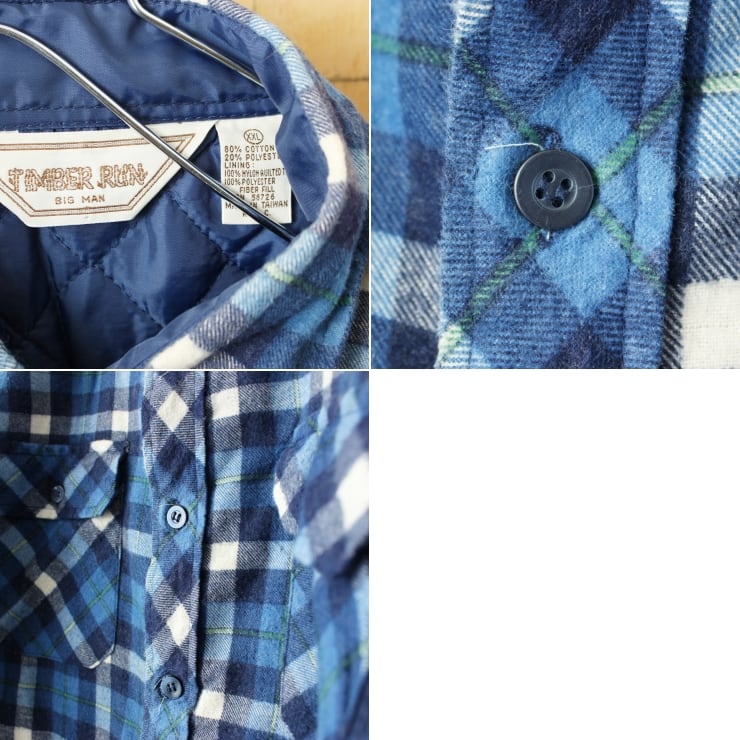 ビッグサイズ 80s 90s USA TIMBER RUN キルティングライナー チェックシャツ ブルー メンズXXL 長袖 中綿 アメリカ古着です。