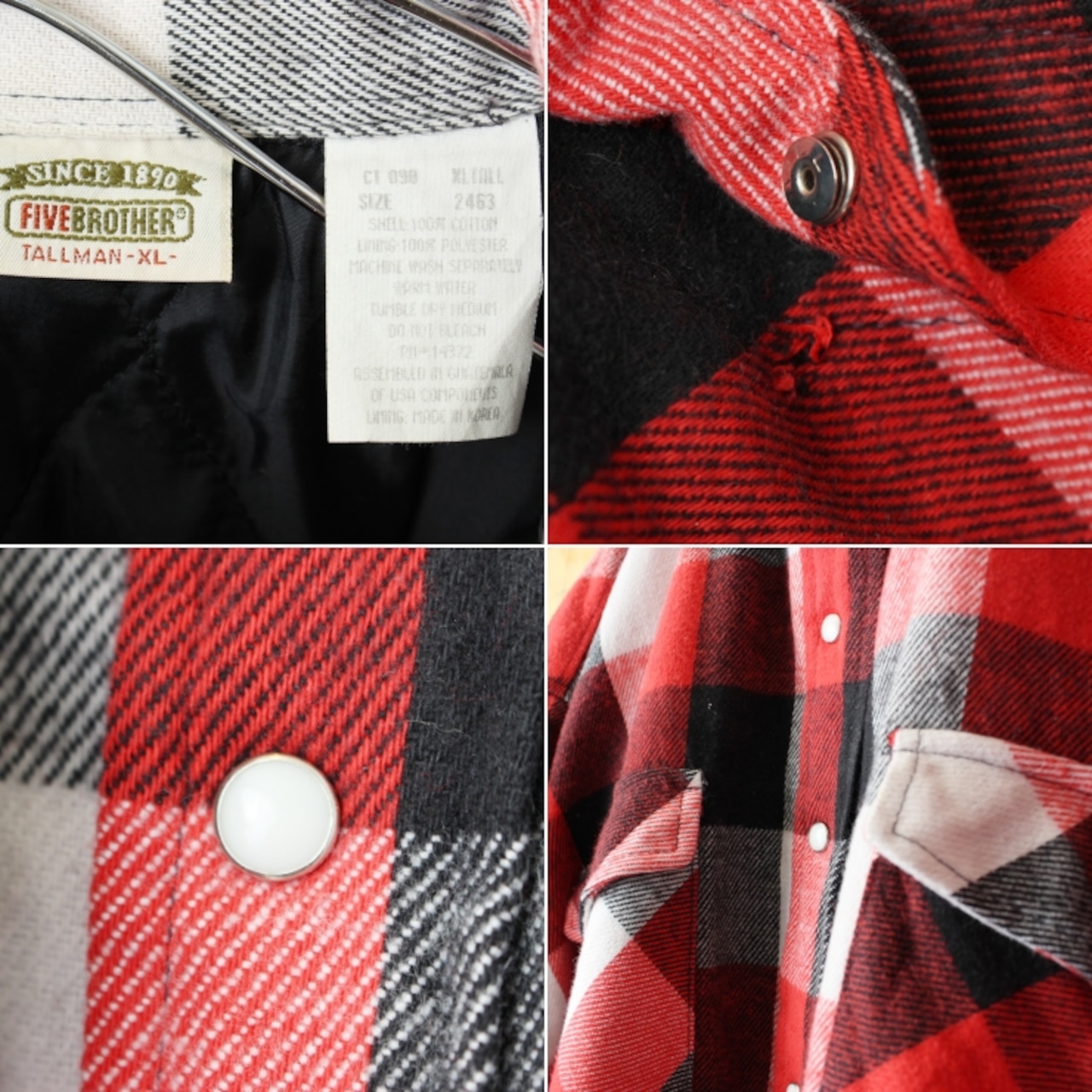 ビッグサイズ 90s 00s USA FIVE BROTHER キルティングライナー チェックシャツ レッド ブラック メンズXL 長袖 中綿 アメリカ古着 092425aw10