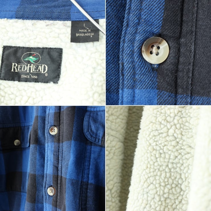 90s 00s USA RED HEAD ボアライナー ブロックチェックシャツ ブルー ブラック メンズL 長袖 アメリカ古着です。