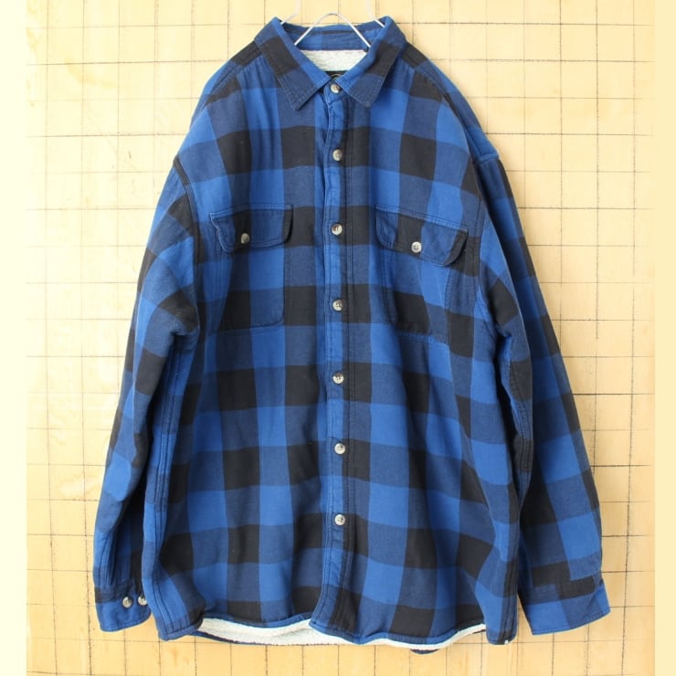 90s 00s USA RED HEAD ボアライナー ブロックチェックシャツ ブルー ブラック メンズL 長袖 アメリカ古着 092425aw9
