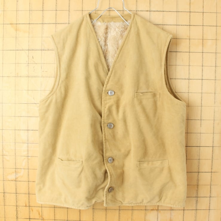 60s 70s ドイツ ボアライナー コットンワークベスト メンズL相当 ベージュ アウトドア キャンプ ユーロ ヨーロッパ古着 082725aw82