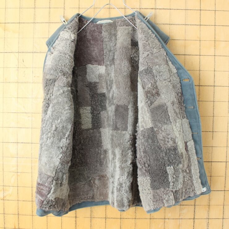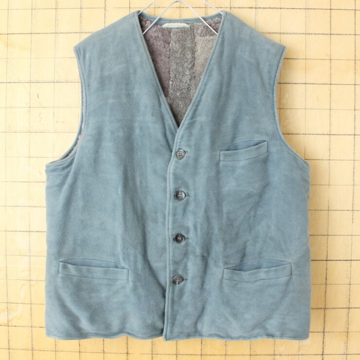 60s 70s ドイツ ウールボアライナー コットンワークベスト メンズM相当 ブルーグレー アウトドア ユーロ ヨーロッパ古着 082725aw84
